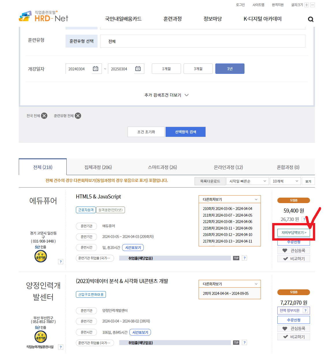위 기관들은 모두 HRD-Net 홈페이지에 등록이 되어있습니다.