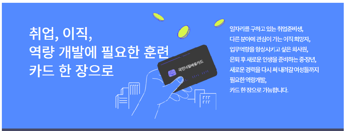 급격한 기술발전에 적응하고 노동시장 변화에 대응하는 사회안전망 차원에서 생애에 걸친 역량개발 향상 등을 위해 국민 스스로 직업능력개발훈련을 실시할 수 있도록 훈련비 등 지원하는 제도이다.